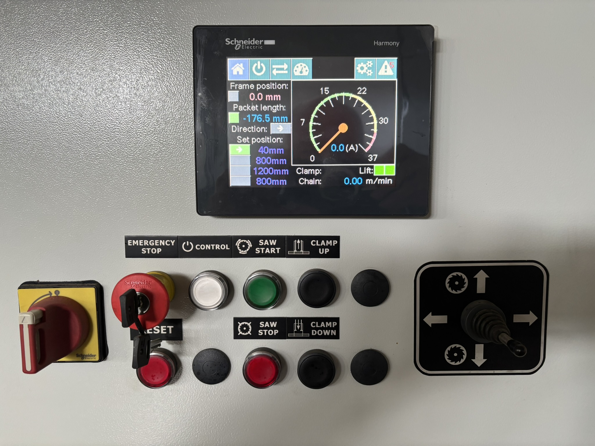 “Full Automatic” is a fully equipped MPP package saw, featuring package lifting, clamping, active lubrication, and safety grids; it operates and performs programmed cuts, returning to its initial position after cutting.